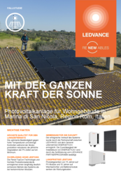 Gemeinsam mit ENERGETICA+ hat LEDVANCE eine moderne Photovoltaikanlage auf einem Wohngebäude in Marina di San Nicola in der Region Rom an der Küste des Latiums geliefert und installiert. Das System besteht aus 12 PV-Modulen, einem Wechselrichter und zwei Batteriemodulen und setzt Maßstäbe für unabhängige, innovative und nachhaltige Energieerzeugung: durch die effiziente Umwandlung von Sonnenlicht, extrem geringe Zell-Degradation, langfristige Produktqualität und dank langer Produktgarantien niedrige Wartungskosten.